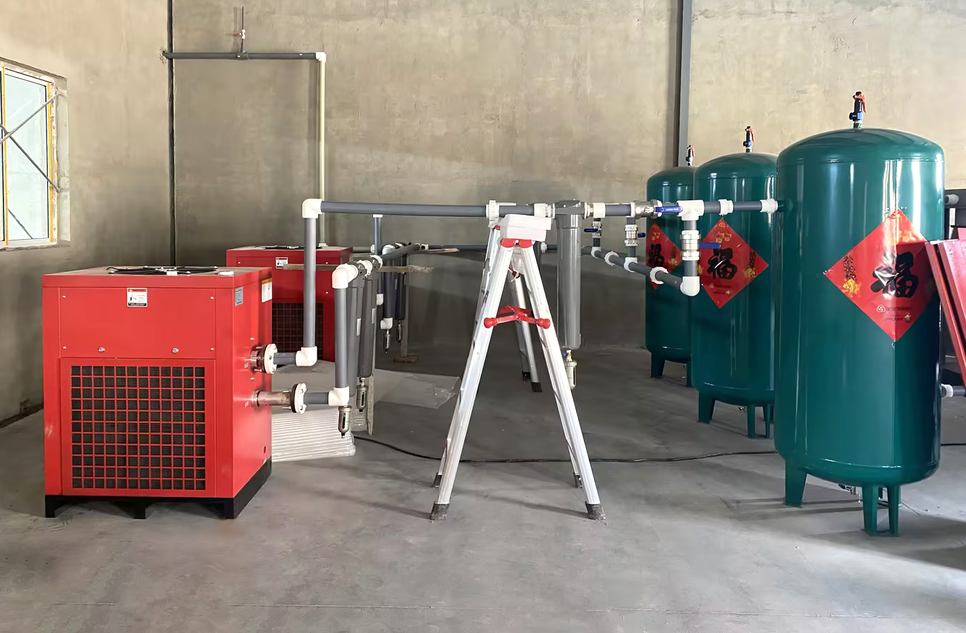 Wenn unser Luftkompressor in Verbindung mit der Nachbehandlungsausrüstung verwendet wird, zeigt er außerdem noch leistungsstärkere Funktionen. Die Nachbehandlungsgeräte können die Druckluft weiter reinigen, Verunreinigungen, Feuchtigkeit und Öl entfernen, dem Unternehmen hochwertige Luftquellen zur Verfügung stellen und die Qualität und Sicherheit von Produkten der Tierhaltung effektiv gewährleisten.